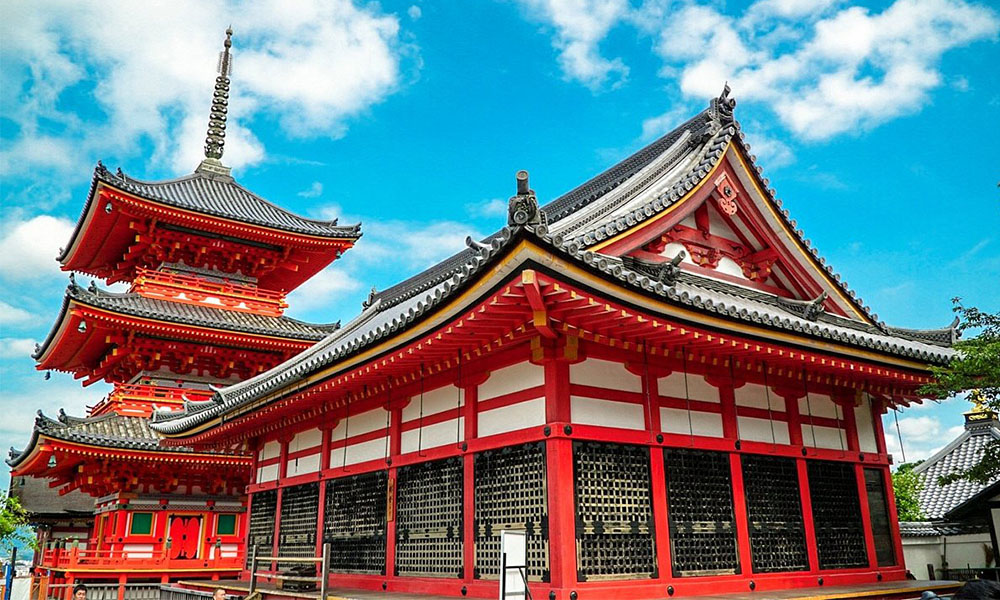 Chùa Thanh Thủy – Kyzomizudera: một trong những ngôi chùa linh thiêng nhất của xứ sở hoa anh đào với lối kiến trúc độc đáo hoàn toàn bằng gỗ, nằm trên vùng cao ngọn đồi Higashiyama. Toà nhà chính được thiết kế trông giống như 1 kho báu của quốc gia, được nâng đỡ bởi 139 chiếc cột cao 15m. Chùa Kiyomizu được UNESCO công nhận là Di sản Văn hoá năm 1994.
